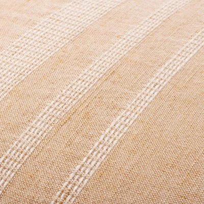 Bring plenty of comfort and style to your bedding by adding the Variegated Stripe Lumbar Throw Pillow from Hearth & Hand™ with Magnolia to your pillow collection. This decorative pillow is adorned with white woven stripes running vertically over the variegated backdrop for a chic look, which is elevated further by the decorative fringed detail on either end. With an oversized construction featuring a soft, breathable exterior and generously filled interior, this lumbar accent pillow provides plenty of comfort while you sit, relax or lounge. Pair it with other embroidered and solid colored pillows for a coordinated and cohesive look, or mix and match with bright designs for additional flair.