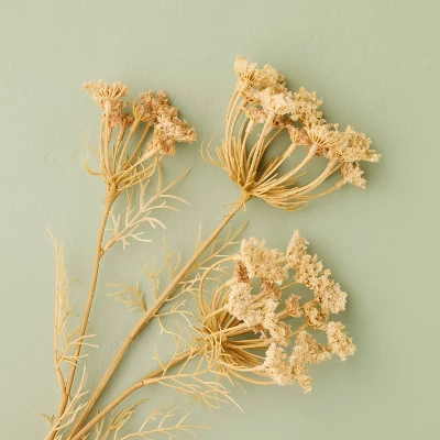 Whether you’re aiming for a romantic tablescape or a wildflower-inspired shelf, this Queen Anne’s Lace Artificial Stem from Hearth & Hand™ with Magnolia is the right fit. This plant stem features three beautiful faux flowers from a single stem. Display them alone or pair with other artificial stems to create a stunning, natural-looking arrangement anywhere in your home.