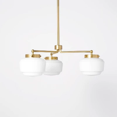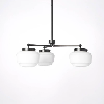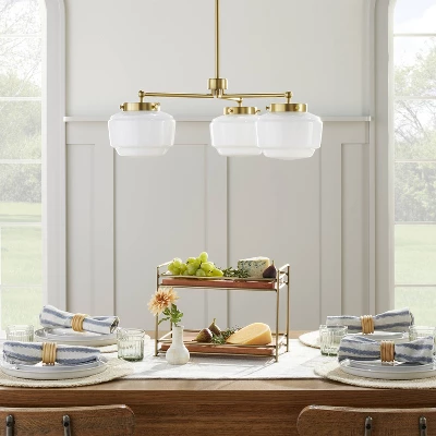 Brighten up your indoor space with this 3-Arm Milk Glass Chandelier Ceiling Light from Hearth & Hand™ with Magnolia. This chandelier ceiling light features a 3-arm open design that extends from a metal body fitted with white glass shades to add some extra shine to your living space. The ceiling chandelier offers an adjustable hanging height to fit your space, while the one-way light setting allows for easy functionality. Install it above the dining room table or kitchen island to cast a welcoming glow over family dinners or casual get-togethers.
