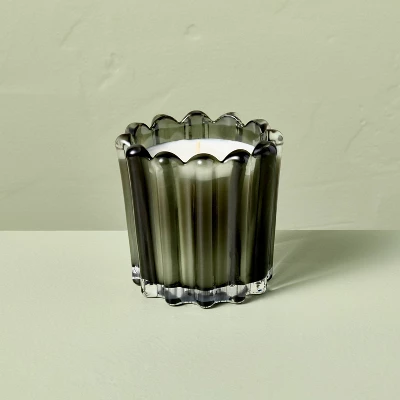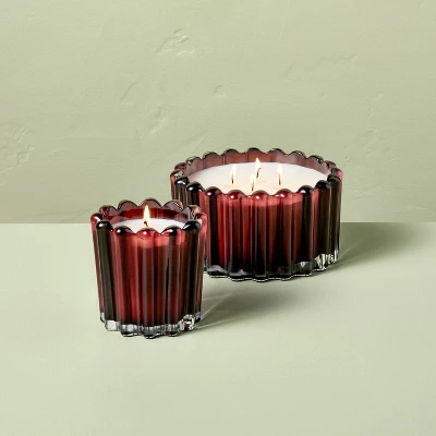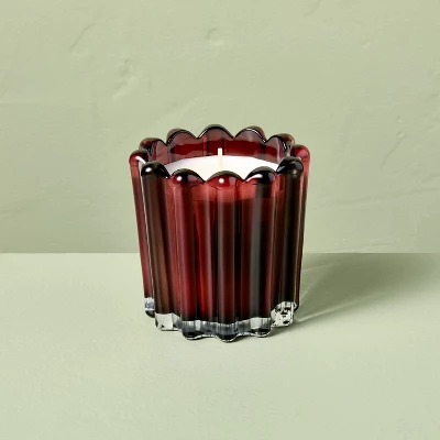 Create a warm and inviting atmosphere for any occasion with the Seasonal Ribbed Glass Jar Candle from Hearth & Hand™ with Magnolia. This scented jar candle features a round glass jar with a ribbed design for a decorative appeal. Made of glass, this round jar candle helps to create a delightful ambiance. Filled with soy and paraffin wax, this glass jar candle burns for around 28 hours.