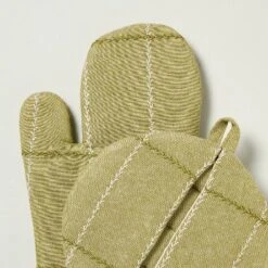 Set Of 2 Faux Stitched Grid Oven Mitts Green – Hearth & Hand™ With Magnolia