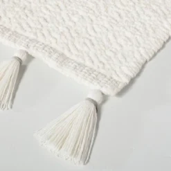 24″x24″ Woven Slub Checkered Throw Pillow With Tassels Cream/Gray – Hearth & Hand™ With Magnolia