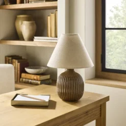 Rattan Accent Table Lamp (Includes LED Light Bulb) Brass/Brown – Hearth & Hand™ With Magnolia